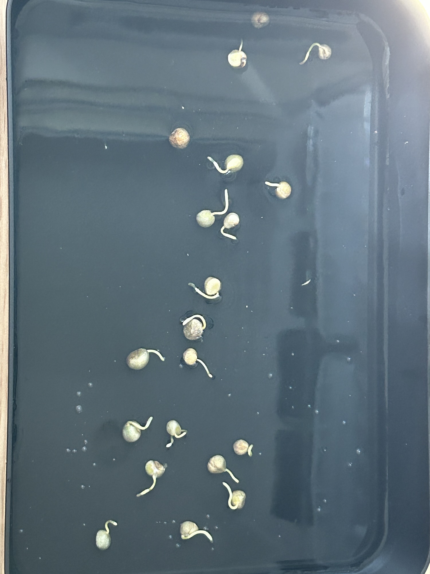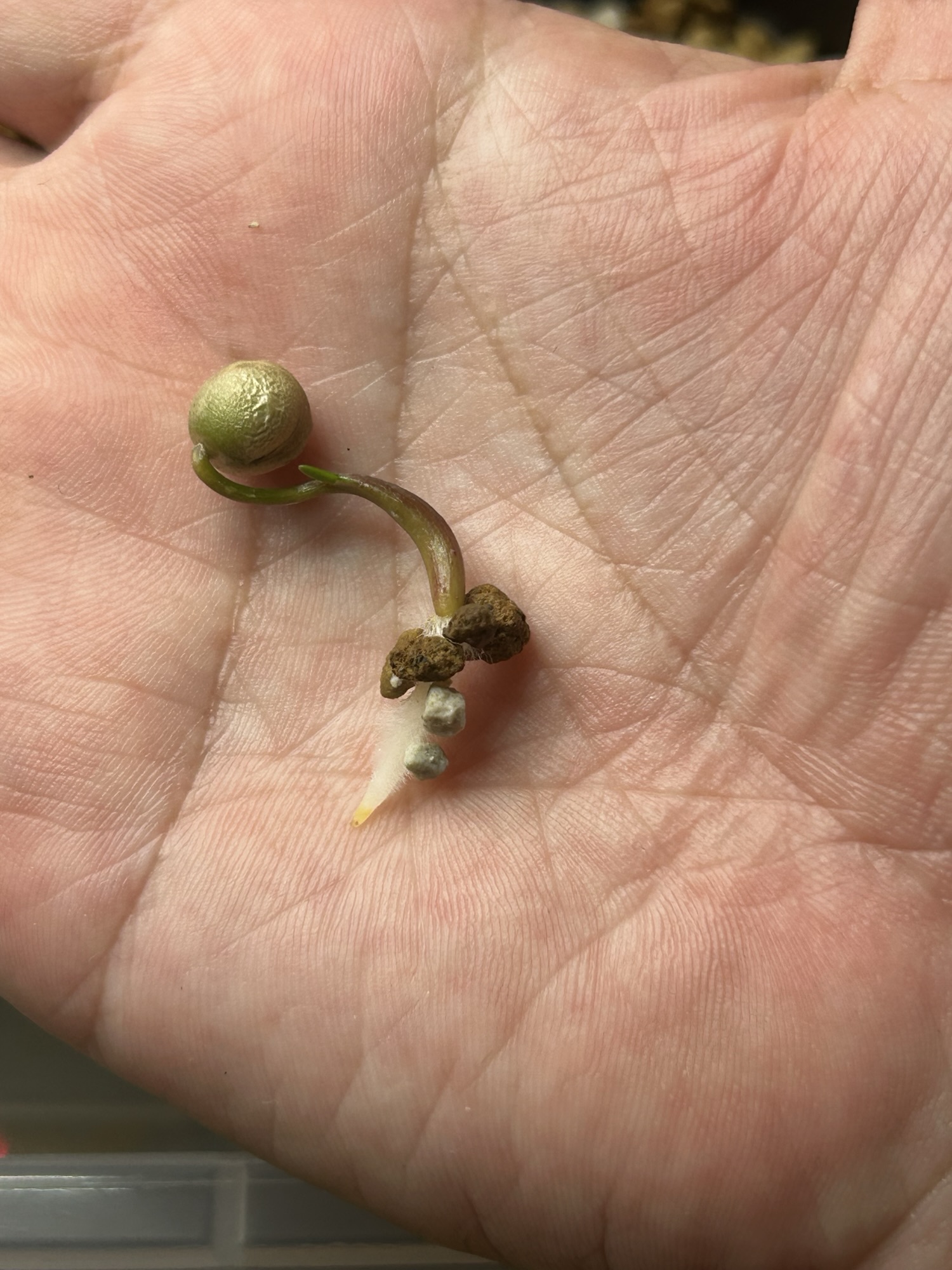 今回入手した種子は、届いた時点で根が出ているものがほとんどでした。