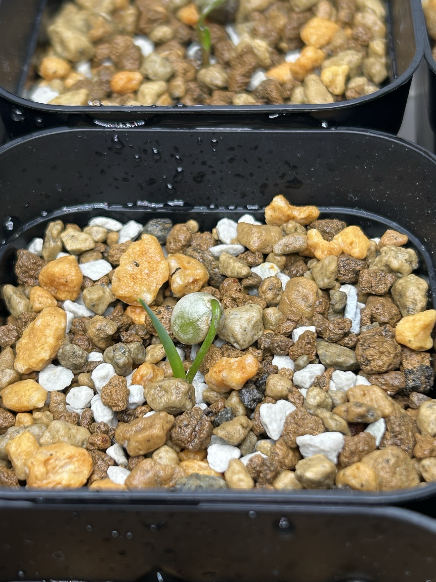 ブーファン・ハエマンソイデスの実生は、発芽までは比較的スムーズに進み、その後も安定して成長していく様子が確認できました。