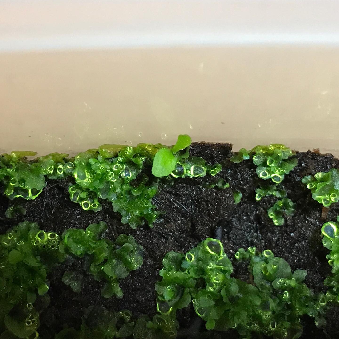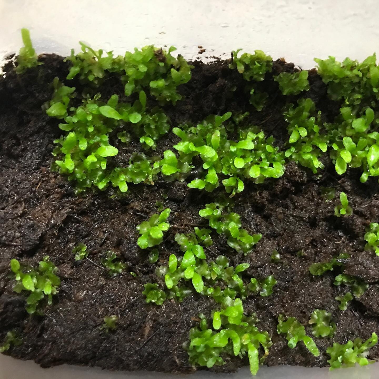 ビカクシダの胞子培養では、前葉体の成長のあとに小さな子株(胞子体)が現れます。